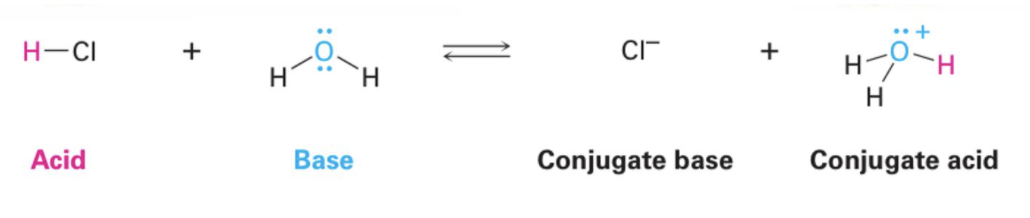 - 예시: hydrogen chloride(HCl)를 물(H2O)에 녹이면 HCl은 산으로 작용하여 양성자를 내주고, 물은 염기로 작용하여 양성자를 받아들여 Cl-와 H3O+를 형성한다.