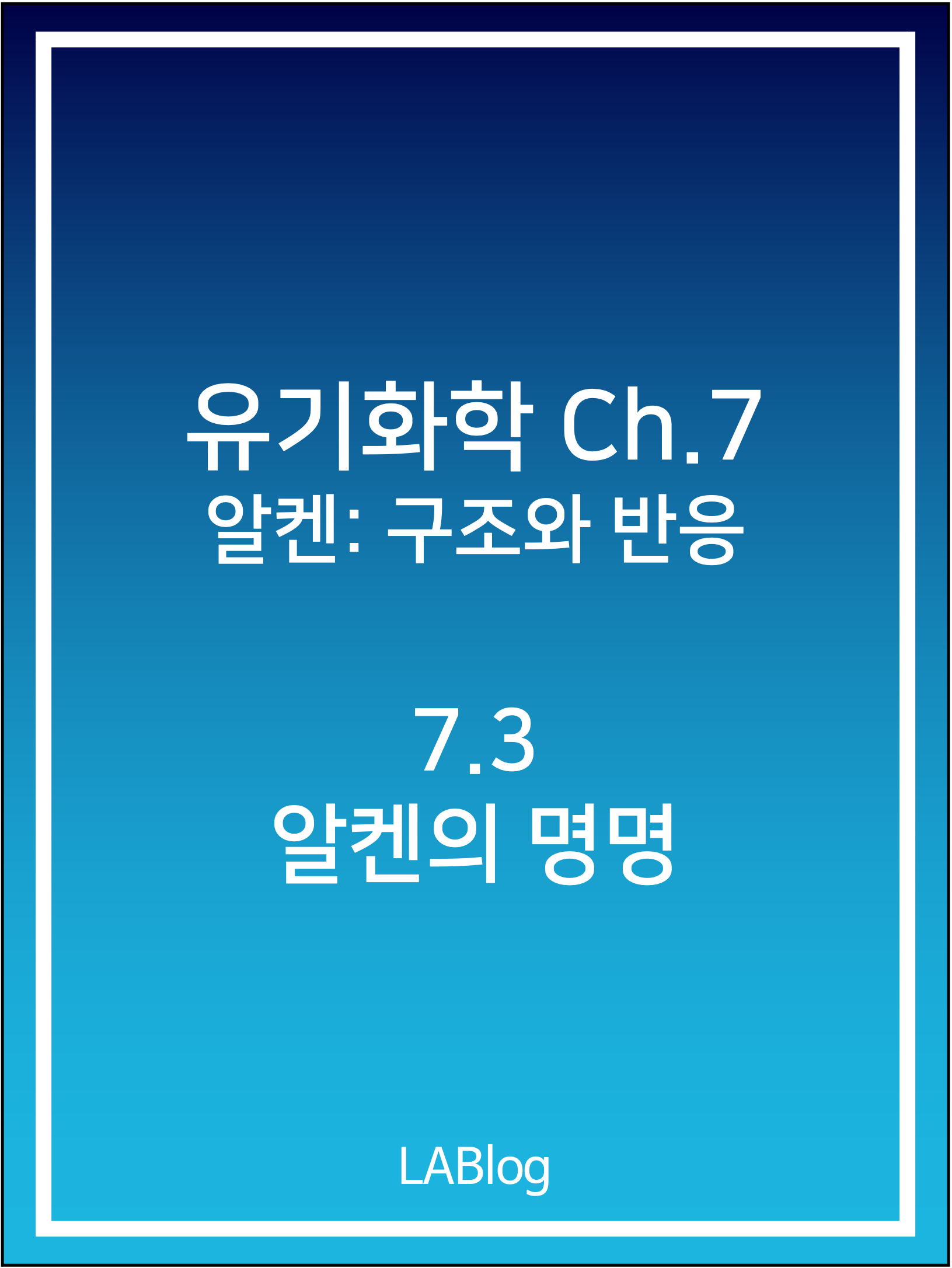 - 사이클로알켄의 명명 방법: 이중 결합이 C1과 C2 사이에 오도록 번호를 부여하고, 첫 번째 치환기가 낮은 번호가 되도록 번호를 붙인다.