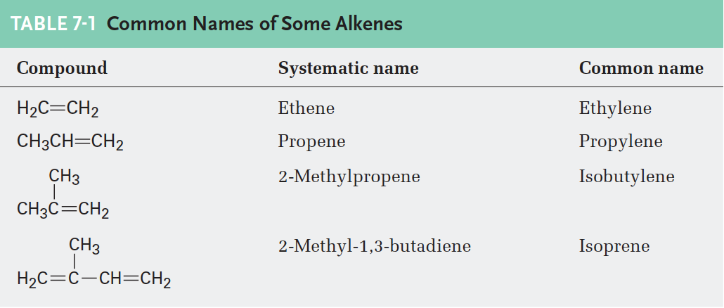 - 표 7-1. 몇 가지 알켄의 관용명