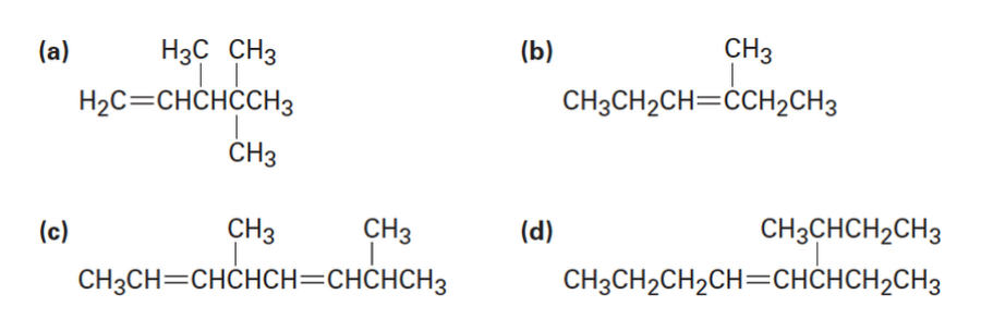 (a) 2,5,5-Trimethyl-2-hexene (b) 2,3-Dimethyl-1,3-cyclohexadiene