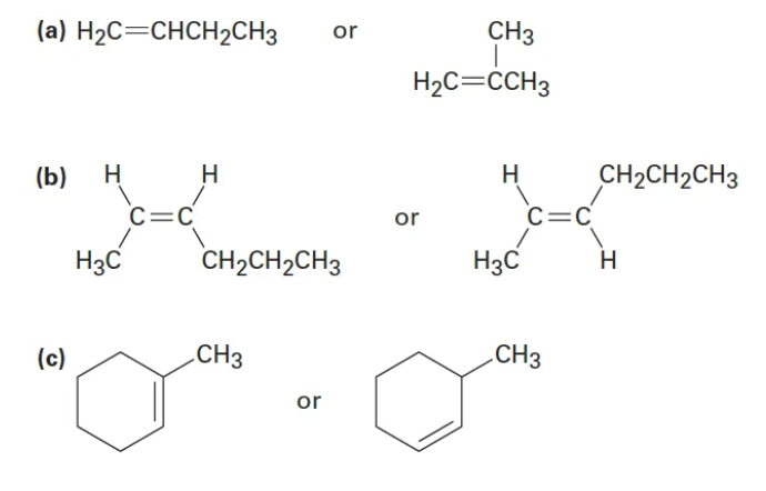 Problem 7-15. Name the following alkenes, and tell which compound in each pair is more stable: