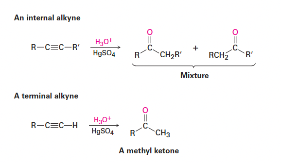 - 예) 3-Hexyne → 3-Hexanone / 1-Hexyne → Hexanal (70%)