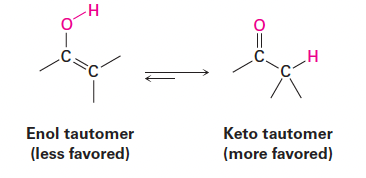 - Enol과 ketone은 tautomer 관계이며, 평형은 거의 항상 ketone 쪽에 존재한다.