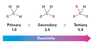4. 수소 종류에 따른 반응성: 1° < 2° < 3°