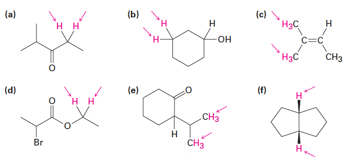 Problem 13-13. How many kinds of electronically nonequivalent protons are present in each of the following compounds, and thus how many NMR absorptions might you expect in each?