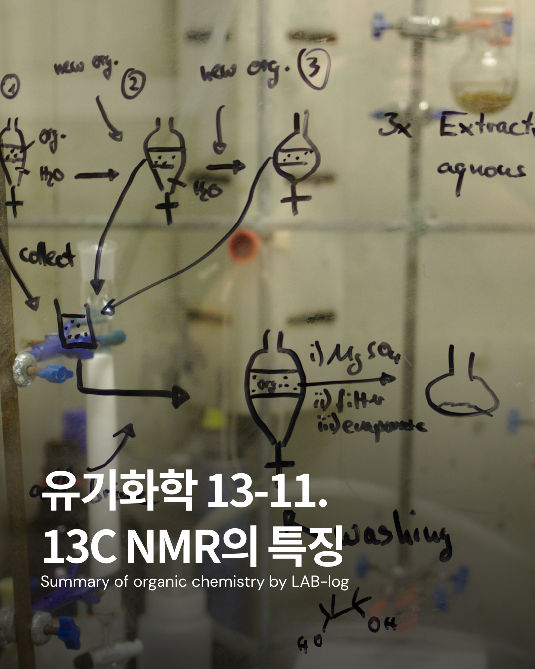 - 특히 수소가 붙지 않은 4차 탄소(quaternary carbon)는 이완 시간이 길어 다른 탄소들에 비해 신호가 훨씬 작게 나타나는 특징이 있음.