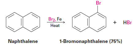 - 예시: Br2 첨가하면 치환반응이 일어나 1-bromonaphthalene을 생성함.