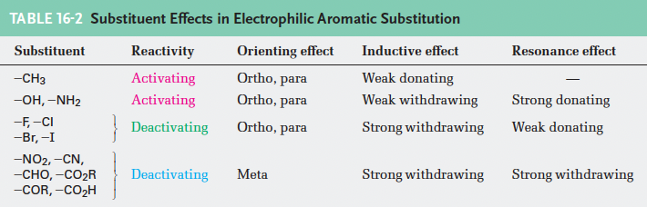2. 치환기의 분류 (Table 16-1) ⭐️⭐️⭐️⭐️⭐️