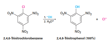 - 주요 예시: 2,4,6-trinitrochlorobenzene은 실온에서 수용성 NaOH와 반응하여 2,4,6-trinitrophenol(피크린산)을 생성함.