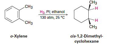 - 예시: o-자일렌은 130 atm의 수소 가스와 백금 촉매 하에 cis-1,2-dimethylcyclohexane으로 환원됨.