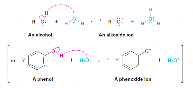 - 알코올과 페놀은 약염기이자 약산으로 작용함.