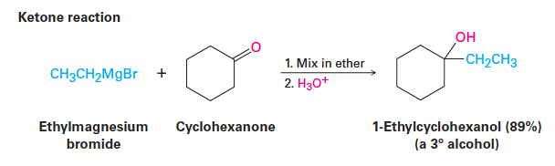 - 따라서 이러한 작용기가 포함된 화합물에는 그리냐르 반응을 직접 사용할 수 없음. (ex. 카복실산)