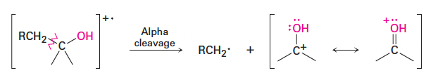 - 알코올은 질량 분석계 내에서 주로 두 가지 경로로 분해됨.