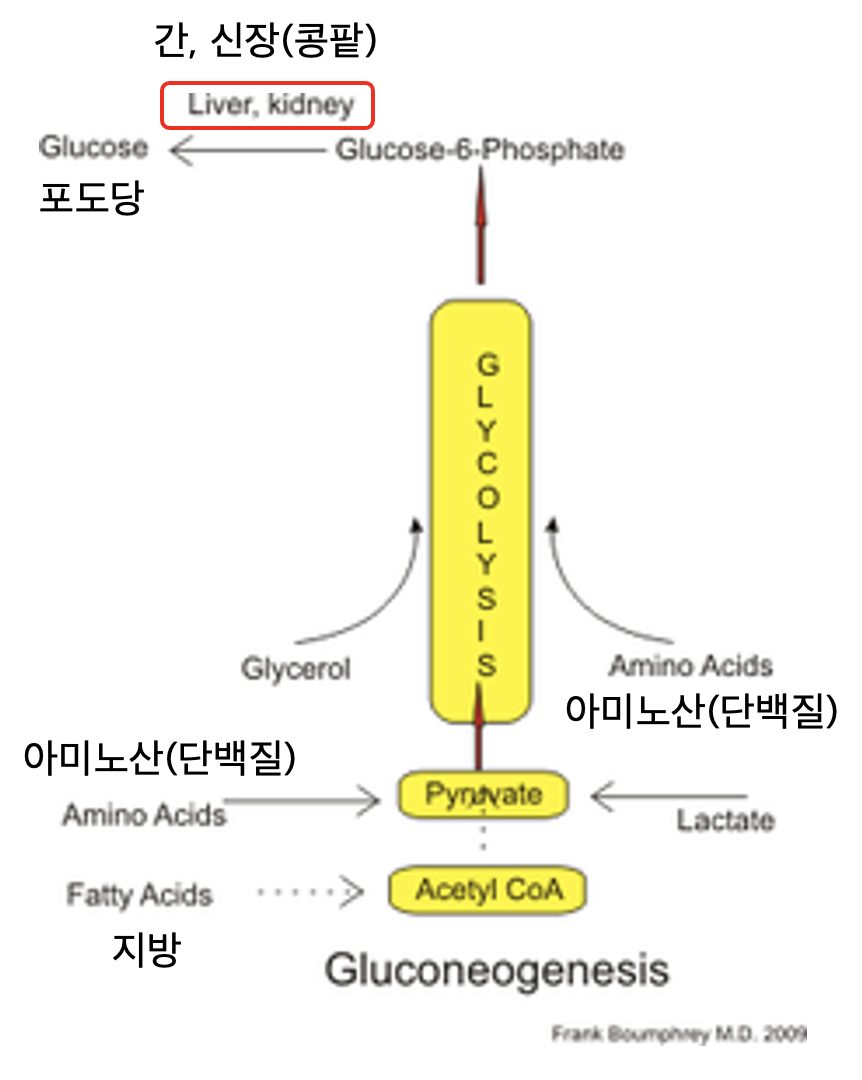 따라서 아침에 공복 운동을 오래(30분 이상) 하게 되면 몸에서 부족한 에너지를 만들기 위해 '포도당신생합성(Gluconeogenesis)' 과정을 통해 포도당, 즉 탄수화물(에너지원)을 만들게 됩니다.