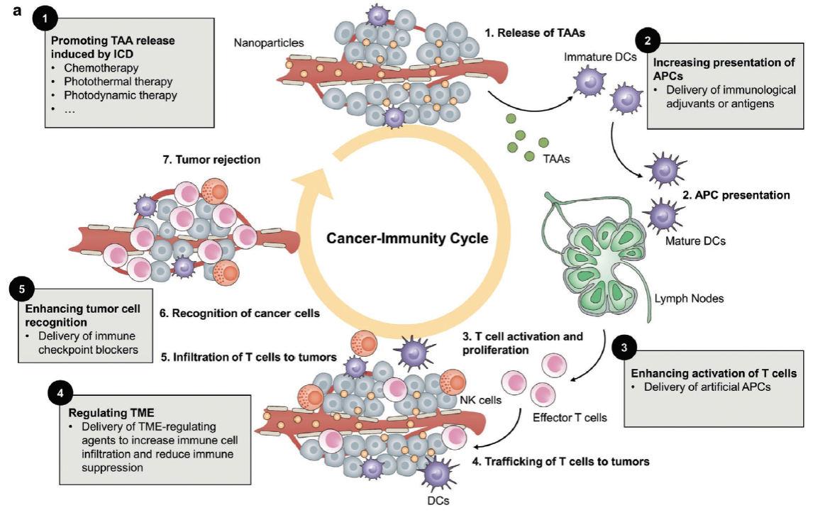 이를 위해 chemotherapy, photothermal therapy, photodynamic therapy 등 ICD 유도가 가능한 다양한 치료 요법이 사용될 수 있습니다.