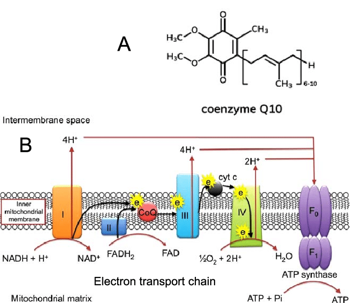 에너지 생성 과정에서 코엔자임 Q10이 관여하기 때문에 코엔자임 Q10이 부족하면 에너지 생성 효율이 떨어지고,