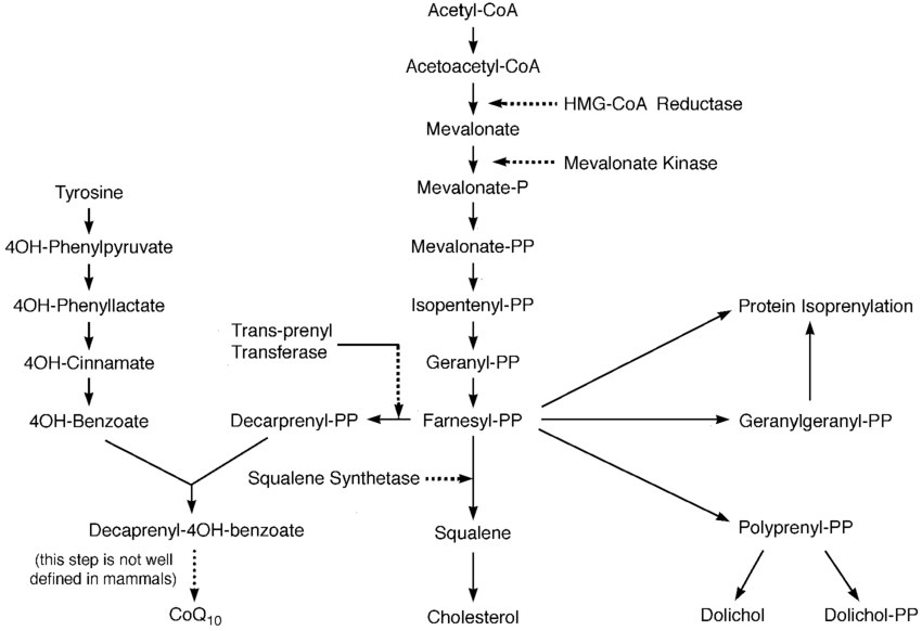 코엔자임 Q10은 위와 같이 복잡한 합성 경로를 거쳐 체내에서 합성이 되는 물질입니다.
