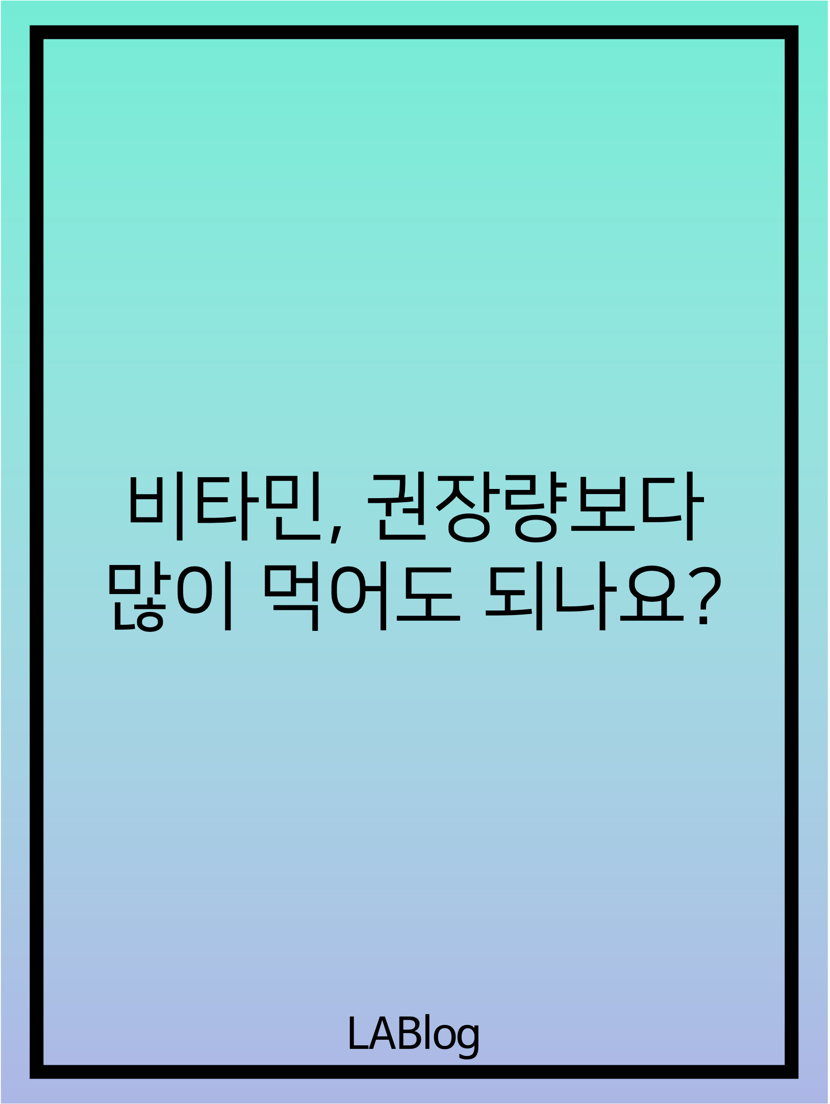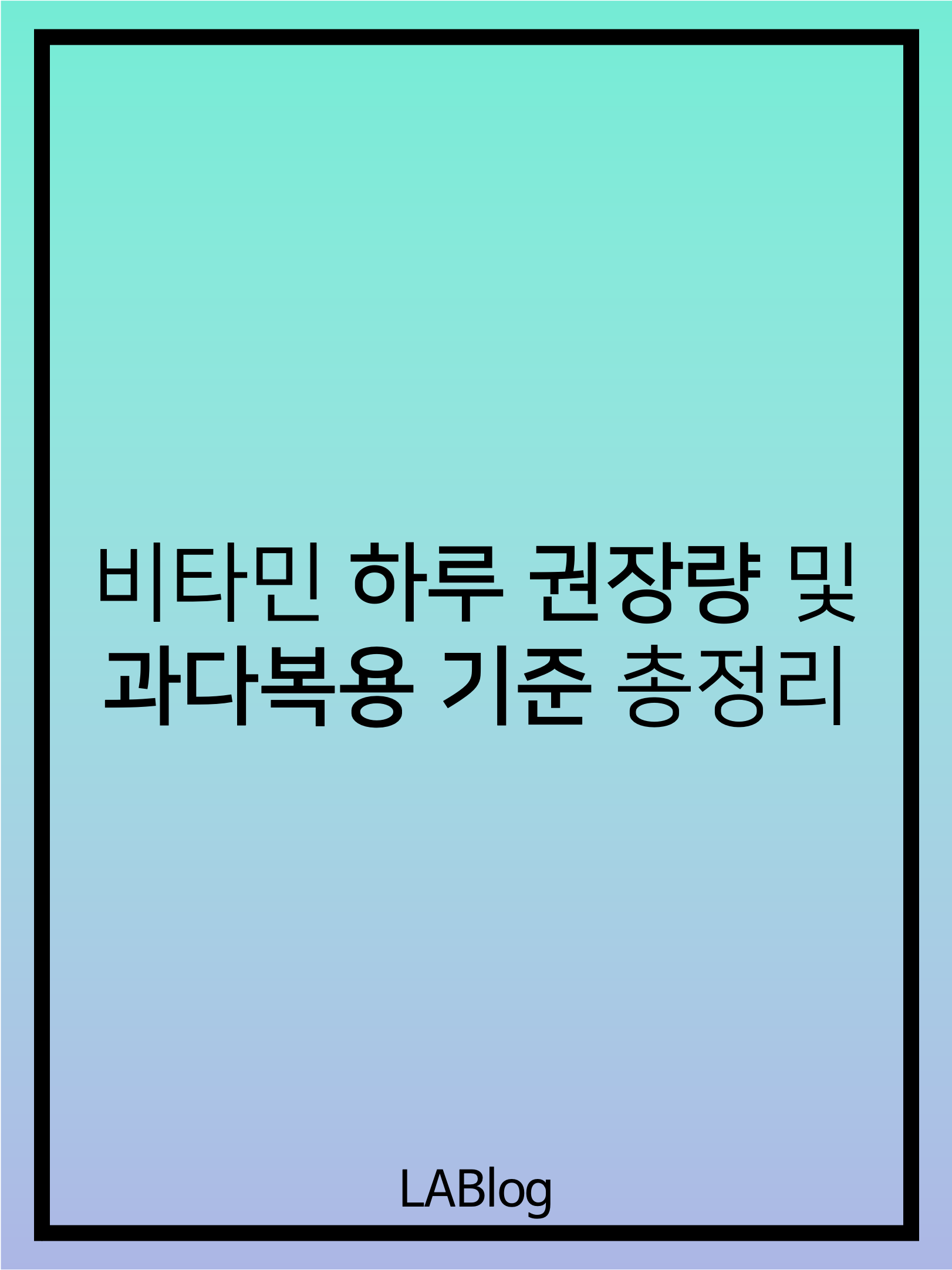 안녕하세요, 라브입니다. 많은 분들이 비타민을 선택할 때 기준으로 하루 권장량을 충족했는가와 너무 함량이 많은 건 아닌가를 살펴볼텐데요. 이때 도움이 될 수 있도록 비타민 종류 별 하루 권장량과 과다복용 기준을 총 정리해보았습니다. 해당 기준은 하버드 의대의 기준을 참고하여 작성하였으니, 본인의 비타민 제품과 비교해주세요! 이름 하루 권장량 최대 복용량 비타민 A (레티노이드, 카로틴) 남성: 900 mcg (3,000 IU) 여성: 700 mcg (2,333 IU) 3,000 mcg (약 10,000 IU) 비타민 B1 (티아민/타이아민) 남성: 1.2 mg 여성: 1.1 mg not known 비타민 B2 (리보플라빈) 남성: 1.3 mg 여성: 1.1 mg not known 비타민 B3 (니아신/나..