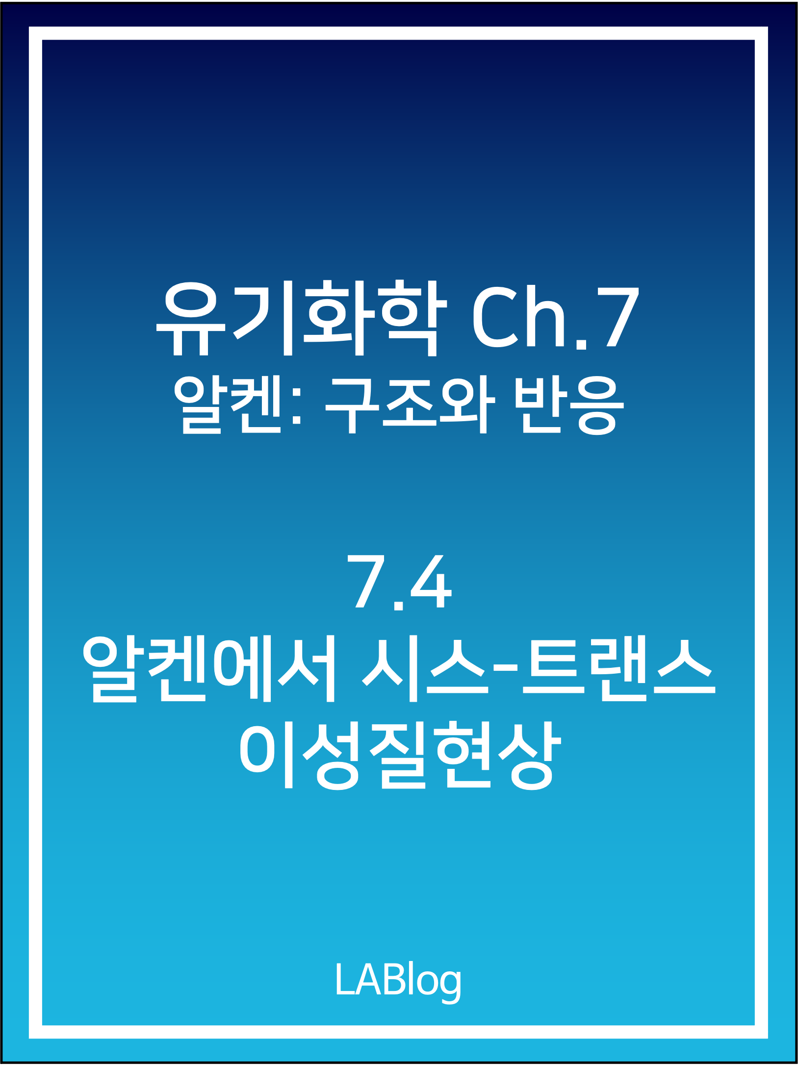 알켄의 이중 결합 탄소는 sp2 혼성이고 서로 120도의 각을 이루며 같은 평면에 놓여 있는 동등한 세 개의 혼성 오비탈을 가지고 있다. 이 sp2 오비탈들이 정면 겹침에 의해 하나의 시그마 결합을 형성하고, sp2 평면에 수직으로 놓여 있는 p 오비탈들이 측면 겹침으로 하나의 파이 결합을 형성한다. 이렇기 때문에 단일 결합은 회전이 용이하지만 이중 결합에서는 회전이 어렵다. 이중 결합 주위를 회전시키기 위해서는 일시적으로 파이 결합이 끊어졌다가 다시 형성되어야 하기 때문이다. 따라서, 이중 결합의 회전 장벽 에너지는 적어도 파이 결합 자체의 세기보다 커야 한다. 즉 이중 결합의 회전이 일어날 수 없기 때문에 두 개의 알켄 이성질체는 자발적으로 상호 변환될 수 없고 이들은 분리 가능한 서로 다른 화합물이..