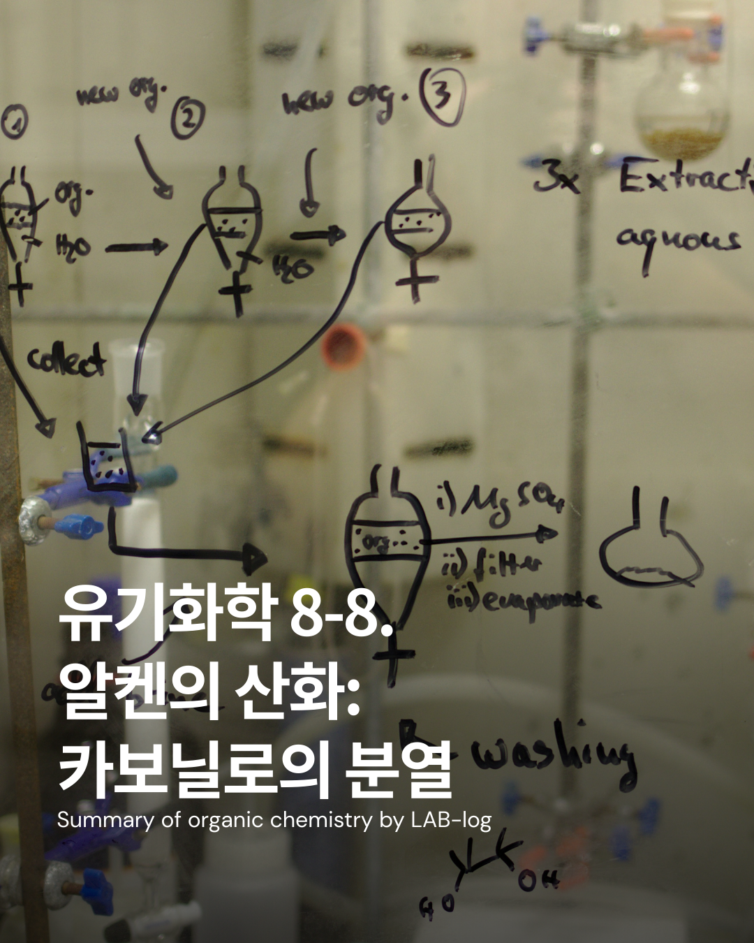 오존분해(Ozonolysis)의 원리와 메커니즘 개요알켄의 C=C 이중결합에 오존(O₃) 이 첨가되면 몰로조나이드(molozonide) 라는 불안정한 고리 구조 중간체가 형성됨.몰로조나이드는 곧바로 rearrangement를 거쳐 오조나이드(ozonide) 로 바뀜.오조나이드는 폭발성이 있어 분리하지 않고, 즉시 환원 조건(Zn/AcOH 또는 (CH₃)₂S 등) 으로 처리하여 두 개의 카보닐 화합물(C=O) 로 끊어짐. C=C 결합의 각 탄소가 C=O로 산화되어,양쪽이 모두 치환 탄소 → 케톤 2개한쪽이 1° 탄소(=H 있음) → 알데하이드두 탄소 모두 H 보유 → 두 알데하이드 생성됨. 2. 다양한 Oxidation cleavage 조건 비교: O₃ vs KMnO₄ vs HIO₄(1) 오존분해 O₃ ..